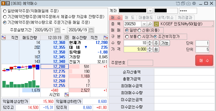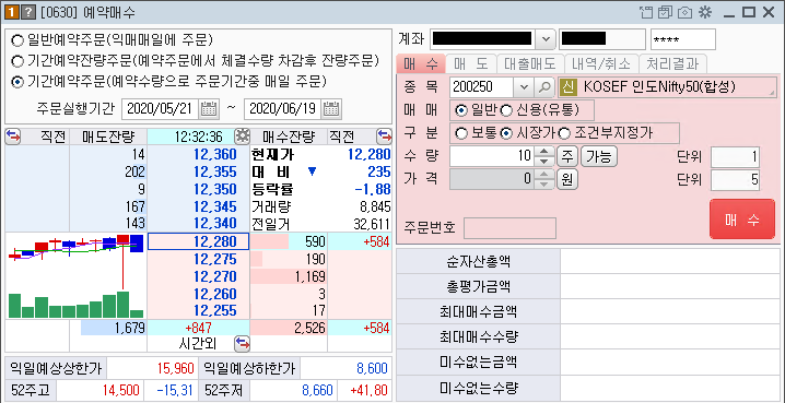 KOSEF 인도Nifty50(합성) 이라는 ETF 종목이 있습니다. 말 그대로 인도증권거래소의 Nifty 50 지수를 추종하는 ETF인데 설명을 위해 오늘이 2020년 5월 20일이라고 가정하고 이 종목을 투자한다고 해 봅시다.